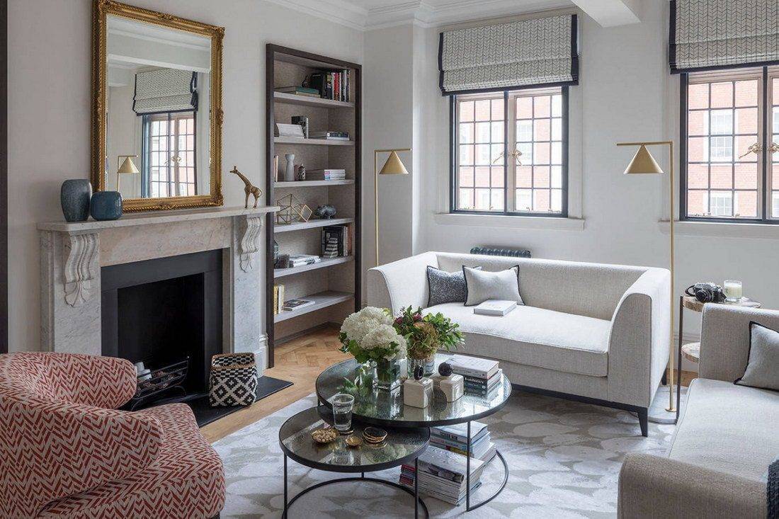 В дополнение к мебели в Англии, как правило, в комнатах располагают множество различных аксессуаров. Чувство меры здесь лишнее — картины и фотографии могут размещаться так плотно, что может быть не видно обоев. Среди фотопортретов можно встретить и любимую собаку, и лошадь неизвестной вам породы. На полке камина можно найти подсвечники и рамки. На диваны раскладывают много декоративных подушек, они придают помещению душевность и красоту.
