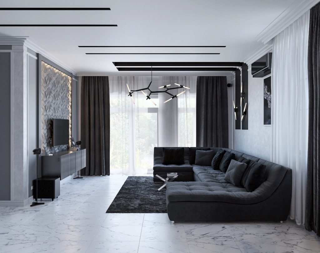В таких комнатах часто присутствует зонированное многоуровневое освещение каждой части эксплуатируемого пространства.