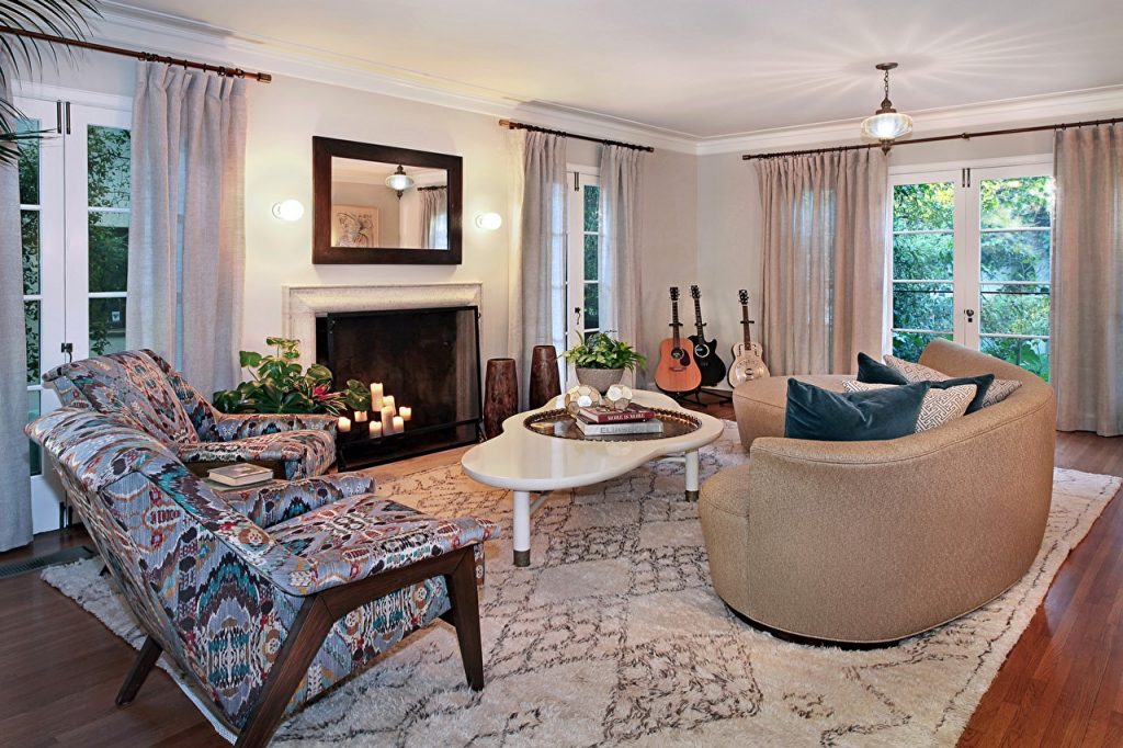 Дизайн гостиной в доме с большими окнами: шторы создают мощный акцентИсточник pinterest.com.au