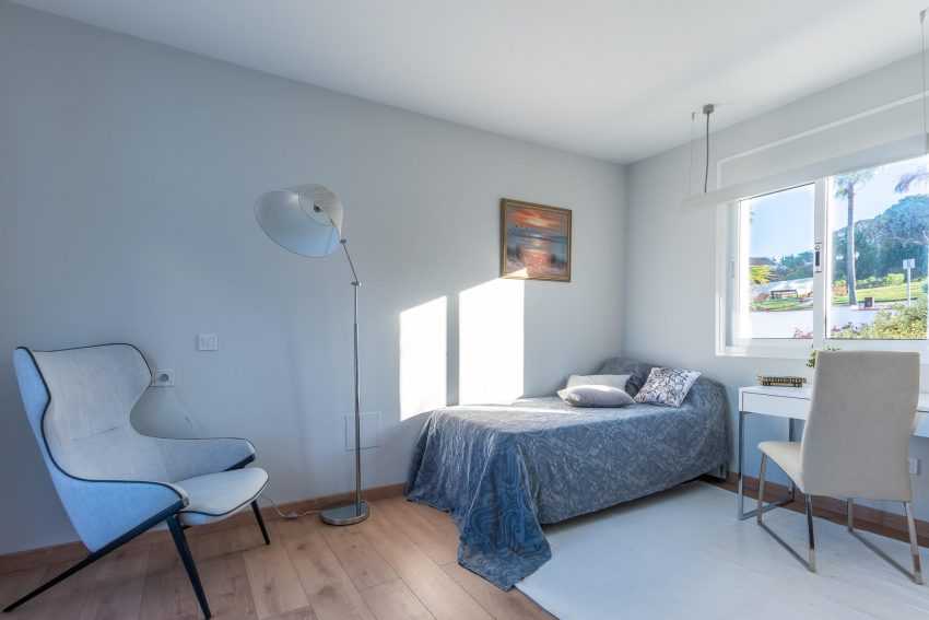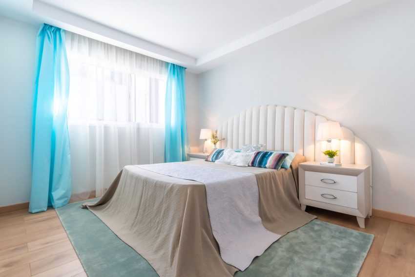 Кровать, скорее всего, будет выбрана полноценная с ортопедическим матрацем, еще очень важно предусмотреть хорошее освещение для чтения книг перед сном. Преобладающие оттенки — пастельные
