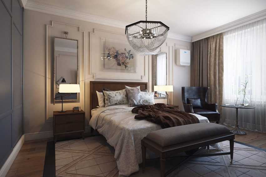 Классика, модерн, арт деко — стилистика, которая в полной мере раскрывается в просторных помещениях, к примеру, в частном доме. Куртуазные, несколько гламурные, напыщенные декоры, резные элементы мебели, позолота, серебро «звучат» в больших спальнях. В моде неоклассические спальни в светлых тонах, белом цвете, бежево-сливочных оттенков.