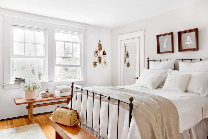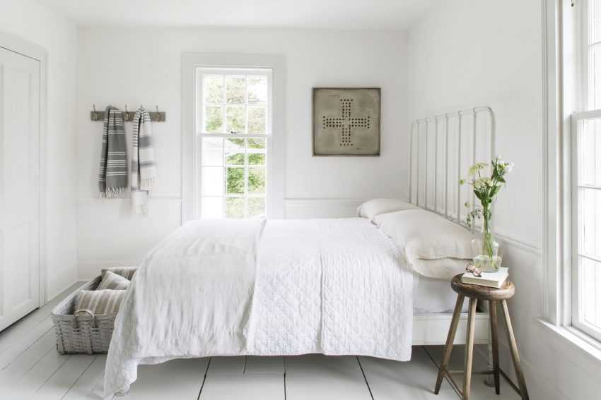 Благодаря доминированию белого цвета в интерьере можно добиться его визуального увеличения. Особенно полезно это будет для маленьких спален. Такой простой, но хитрый трюк поможет расширить абсолютно любую комнату.