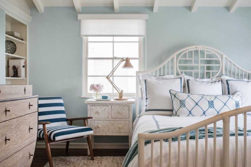 Эти цвета хорошо сочетаются со светлой мебелью, белыми аксессуарами, создают приятную зону для отдыха и сна.