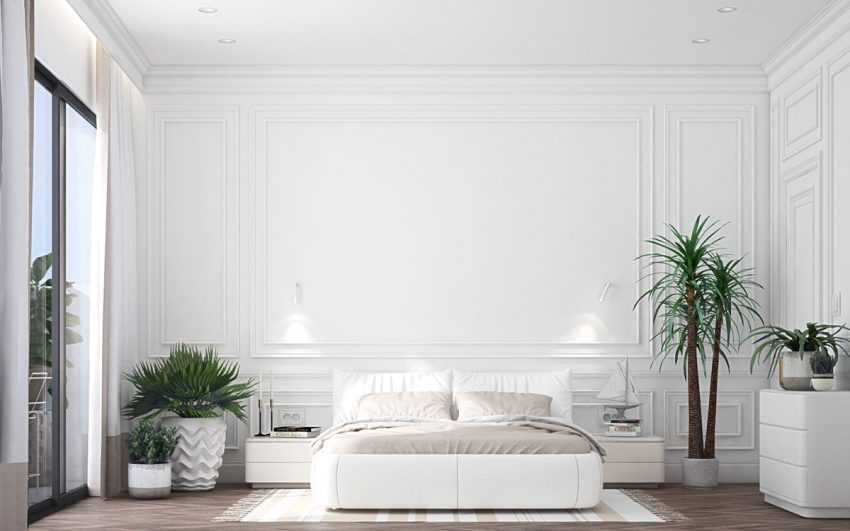 Возможность оформить спальню в любом стилистическом направлении, так как белый цвет дружит с тёплыми и холодными тонами.