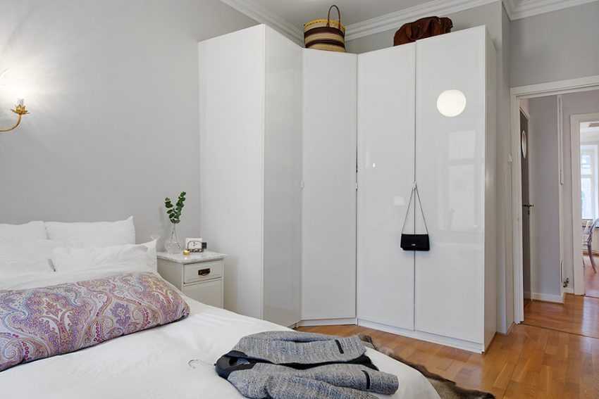 Шифоньер или просто шкаф – это неотъемлемый элемент спальни. Распространённый вариант его расположения – вдоль стены, что позволяет сэкономить пространство в помещении.