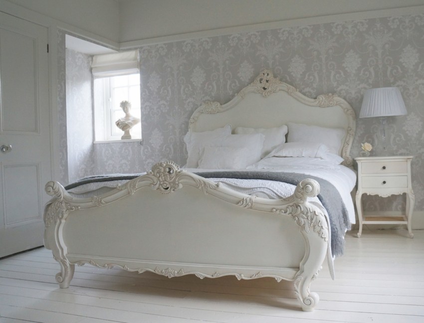 - к кровати подходят белые покрывала из натуральных тканей с цветочными мотивами, природными узорами;