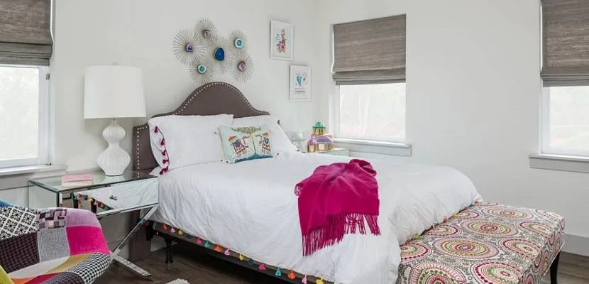 Для того, чтобы белая спальня стала уютной и комфортной, комнату декорируют текстилем из натурального хлопка, льна или шерсти. Придать интерьеру неповторимости и добавить в него ярких красок, можно при помощи контрастных подушек, пледов или покрывал.
