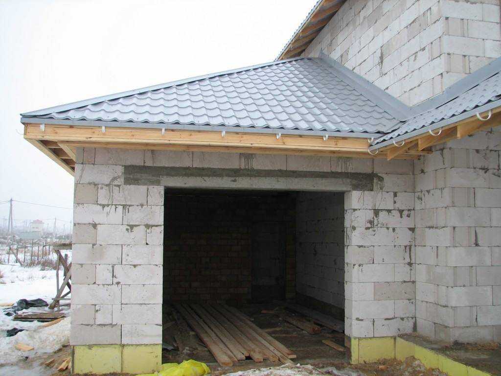 Пристроенный гараж из пеноблоков
