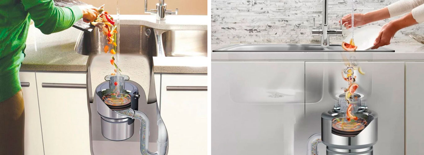 Основная цель такой техники – в переработке отходов, для предотвращения засоров – современный сифон, который не надо чистить.