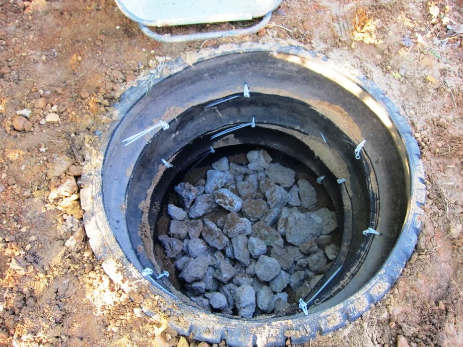 Как вариант, можно вкопать старые покрышки и засыпать щебнем. В теории должно работать