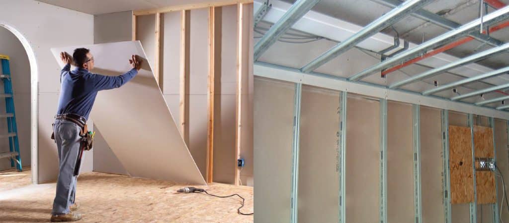 Деревянный и металлический каркасы для гипсокартона