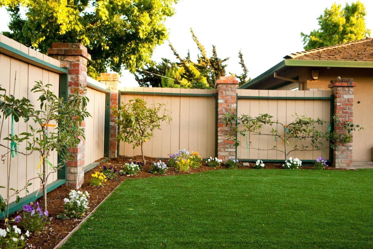 Посаженные вдоль изгороди вьющиеся растения очень быстро разрастаются, но для древовидных хвойных пород понадобится несколько лет чтобы затенить сетку.