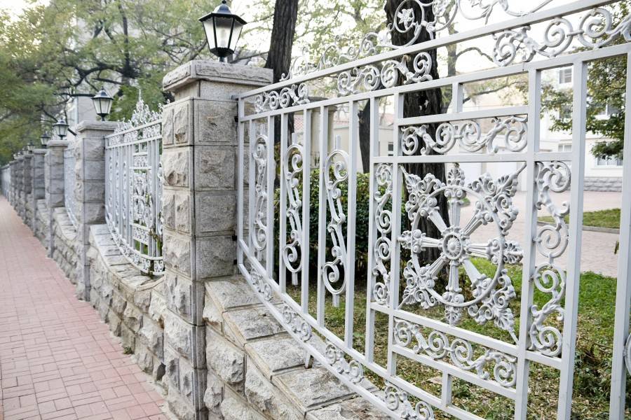 Металлические элементы долговечны. Обращение в мастерскую художественной ковки позволит решить проблему эксклюзивного украшения забора. Выкованные элементы можно крепить как к решетчатому ограждению, так и к конструкциям других типов. Сегодня на рынке представлены готовые кованые элементы, которые могут быть использованы в декоре заборов.