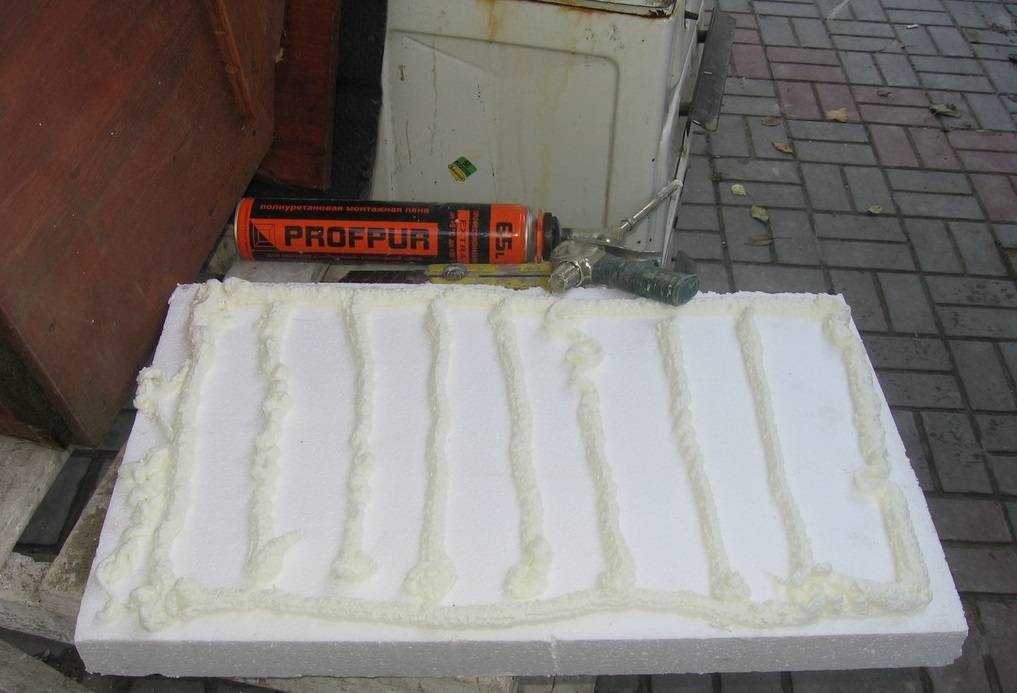 Листы укладывают встык, зазоры задувают монтажной пеной.