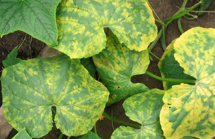 Чаще всего их переносит тля или трипсы. Поэтому теплицу осенью обрабатывают не только от заболеваний, но и от вредителей. Вирусы проявляются в виде мозаичных пятен на листьях растений.