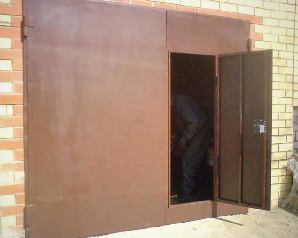 Данный тип распашных ворот имеет двойное назначение. Во-первых, конструкция «двойной металл» позволяет усилить прочность ворот и защиту от взлома, во-вторых, дает возможность повысить степень теплосбережения и звукоизоляции. Эксплуатационные и изоляционные качества ворот могут быть улучшены дополнительно за счет размещения между двумя стальными листами утеплителя.