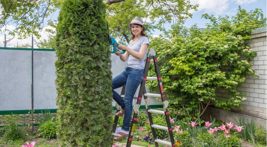 Если вы используете лестницу для работы с очень высокими растениями, наденьте прочную обувь и соблюдайте особую осторожность, чтобы не упасть