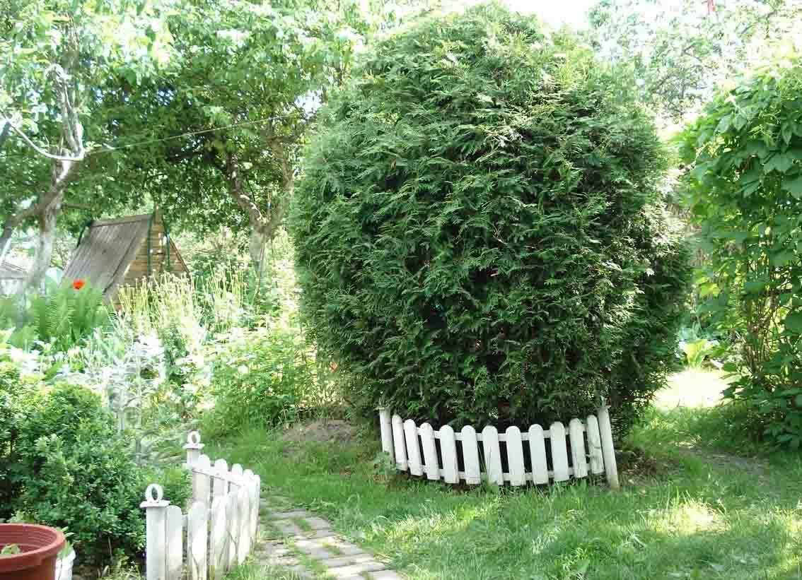 Живая изгородь из туи — это не только очень красивый способ оформления ландшафта, но ещё и функциональный. Она позволяет решить сразу несколько проблем: зонирование, шумопоглощение, фильтрация воздуха и многие другие.