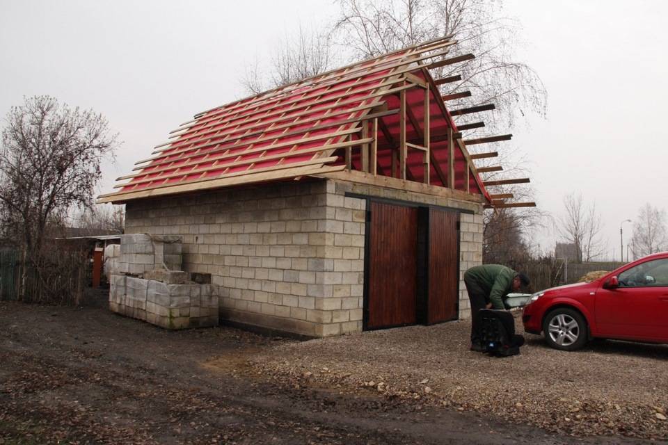 Строительство гаража из пеноблоков сопровождается возведением крыши. Рассмотрим, в каком порядке изготавливается односкатная крыша: