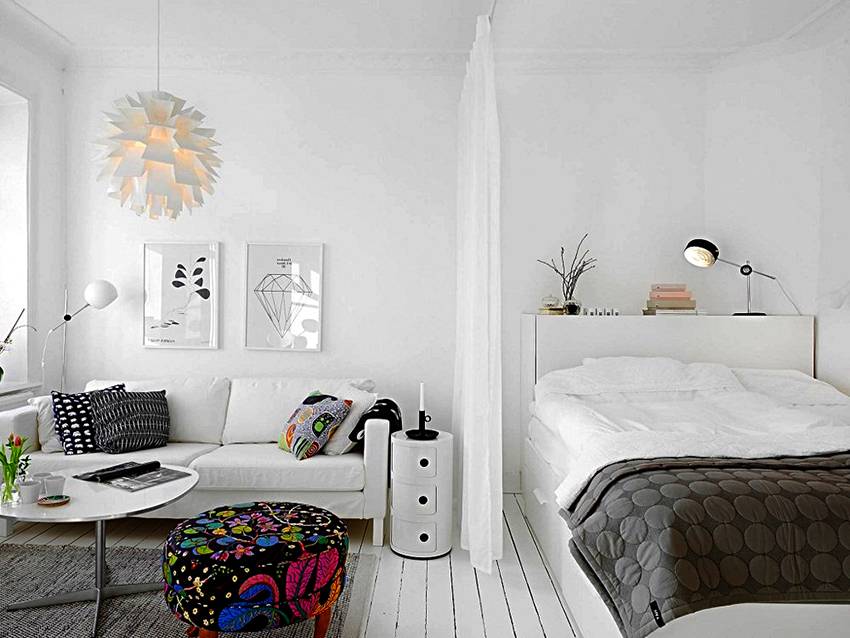 - Для спальной зоны лучше выделить дальнюю часть помещения, чтобы скрыть её от посторонних.