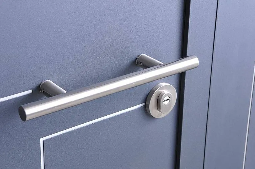 Обычно для входной двери используют только два вида ручек. Есть нажимные изделия, служащие для необходимого управления защелкой в замке, а есть стационарные ручки, задачей которых является помощь при открывании двери.