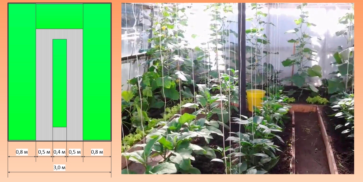 Ширина грядок в теплице 3х6 не меняется, а дорожки придется сократить до 82-83 см. Существенно это на урожай не повлияет, но все же лучше придерживаться правил и изначально рассчитать нужную ширину парника.