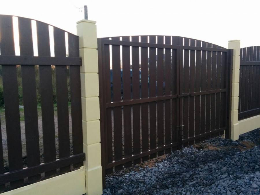 Для заполнения каркаса могут использоваться любые варианты строительного сырья. Главное, чтобы столбы и каркас выдержали будущую нагрузку, а готовое полотно красиво смотрелось на фоне забора.