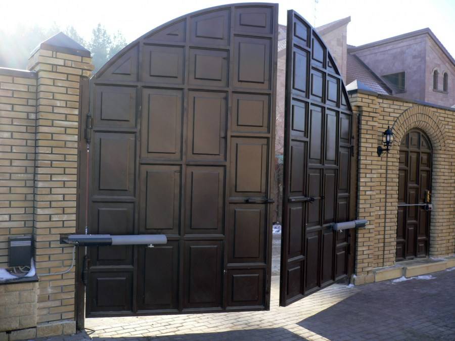 Дверь, ведущая во двор частного дама, может открываться в любую сторону. Однако рекомендуется проектировать таким образом, чтобы она открывалась все-таки внутрь. Так вам не придется думать о возможности нанесения травмы гостю или просто прохожему. Особенно, если забор стоит вблизи к проезжей части или пешеходной дорожке.