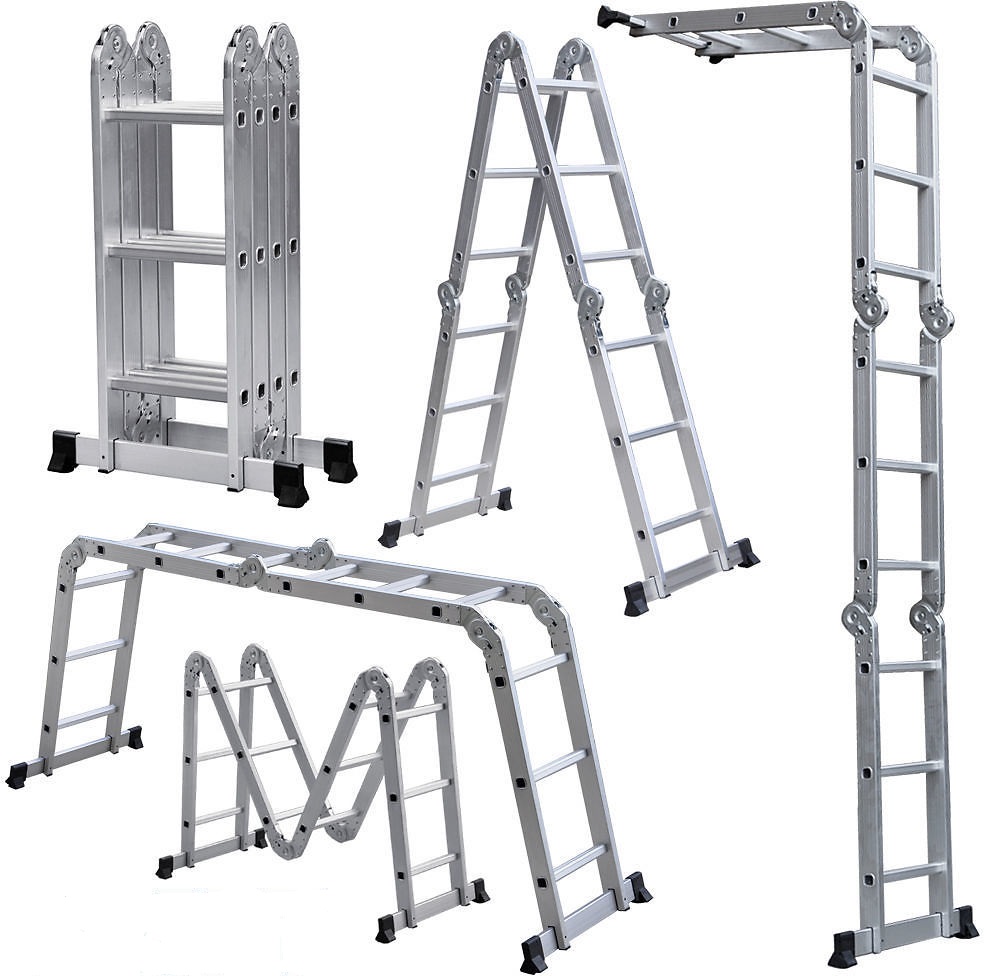 Алюминий — еще один производитель модульных универсальных лестниц. В каталогах в основном недорогие отечественные модели 4х4, 4х5, 4х6. Основной материал — алюминиевый сплав. Достаточно прочный. Лестница выдерживает до 300 кг каждого. Она станет незаменимым помощником в саду, в частном доме, при ремонте.