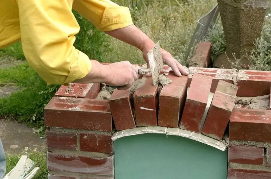 Можно оставить кирпичи, уложенные в самой печи до этого или заменить их на новые шамотные кирпичи (ГОСТ 390-96). Для их соединения потребуется специальная огнеупорная смесь. На дальнюю стену жаровни нужно уложить кирпичи с пропилами внизу. Это необходимо для того, чтобы можно было без проблем устанавливать шампуры или решетку при жарке мяса.