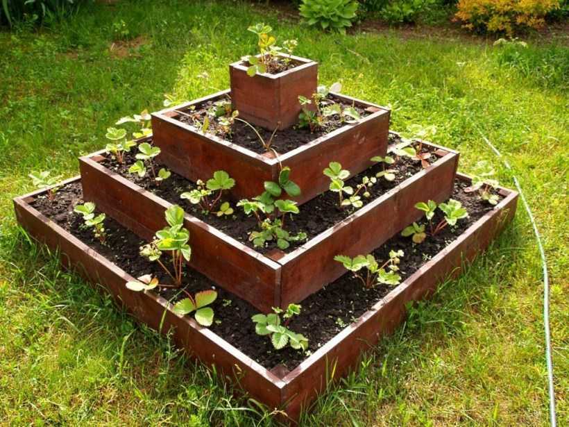 - многоярусные грядки для клубники, своими руками выполненные, и прочие.