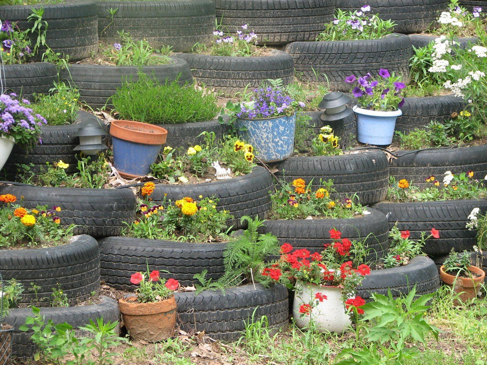 Для клумбы, небольшого цветника или садового украшения не потребуется много автомобильных шин.