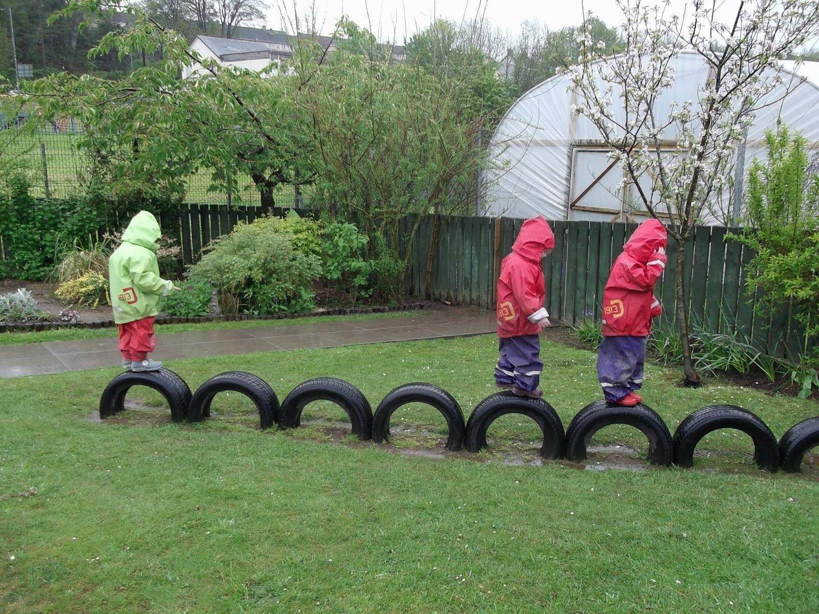Колодец из покрышек, декорированный под мотивы африканских жирафов, прекрасная идея для детских игр.