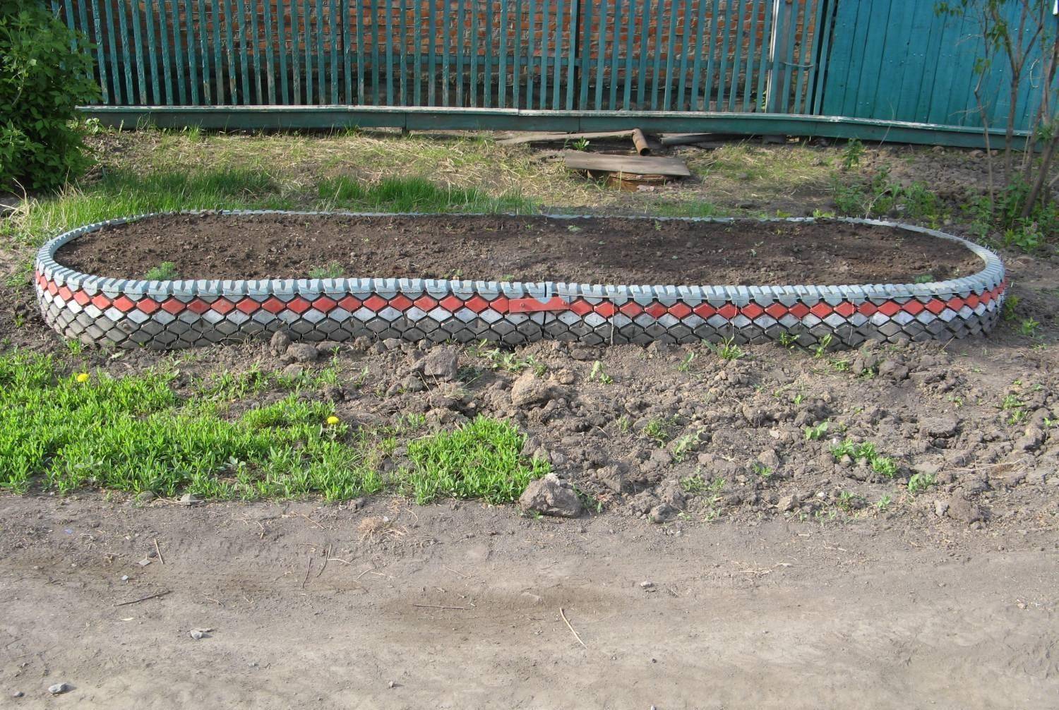 Из таких шин строят даже фундамент. В этой статье разберемся, как строить более простые конструкции — забор и бордюр.