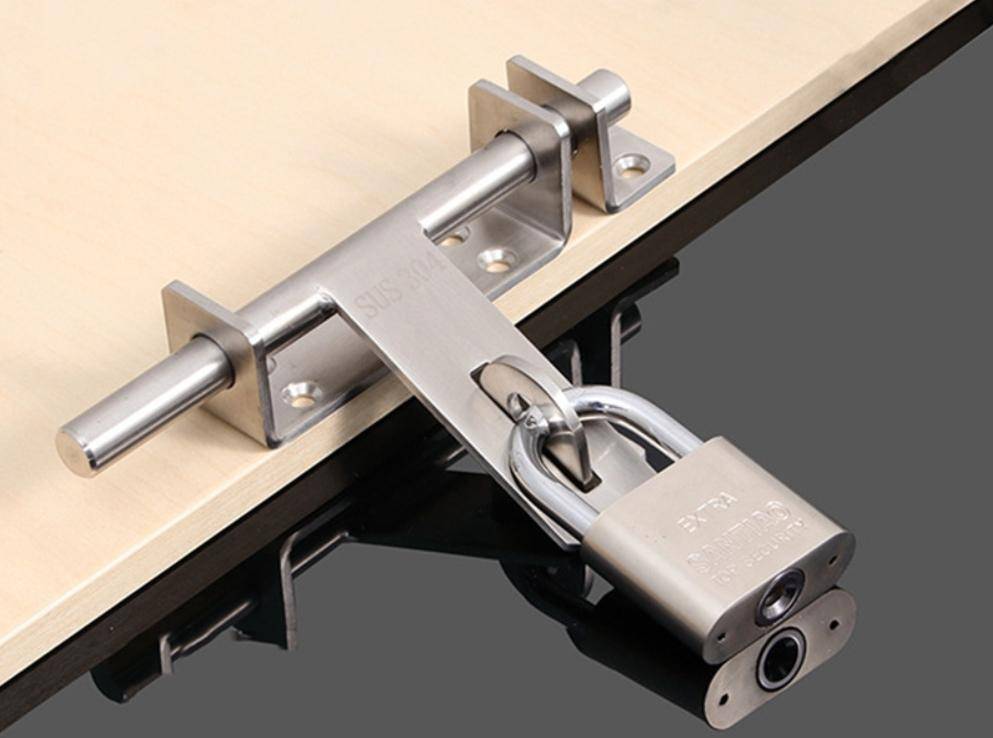 Сейчас навесной замок встречается редко в основном на нечасто посещаемых дачах, откуда вывезены ценные вещи. Его нетрудно открыть шпилькой для волос либо вульгарно выломать ломом. Для него нужно только закрепить две проушины. В паре с ним обязательно устанавливают внутреннюю защёлку.