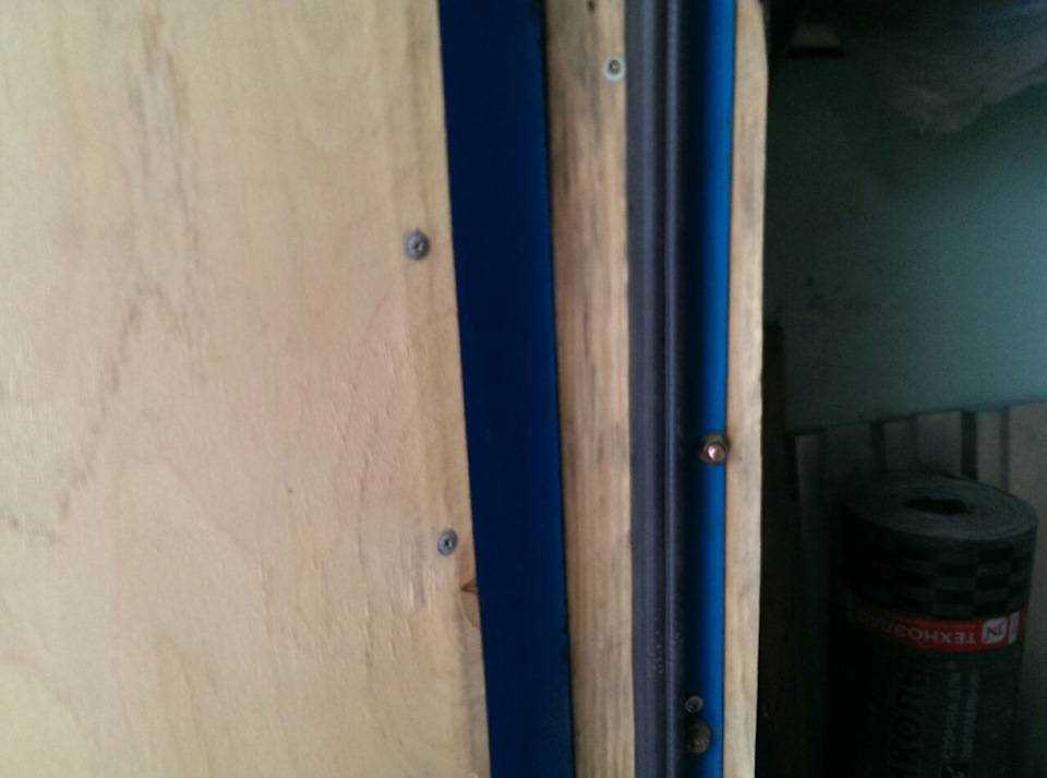 Ворота нужно утеплять пенополистиролом. Для этого крепите на них изнутри деревянные планки, между ними укладываете пенопласт, крепите его либо клеем, либо монтажной пеной. Все щели также запениваются. Поверх расстилаете пенофол (отражающая изоляция) блестящей стороной внутрь. В конце зашиваете ворота фанерой. Но при этом остается серьезная проблема – щели. Через них вылетает все тепло. Их можно устранить, наклеив резиновые уплотнители по периметру ворот. Чтобы они не дубели зимой, их смазывают либо силиконовой смазкой, либо обычным глицерином, который в аптеке можно купить за 2,5 копейки.