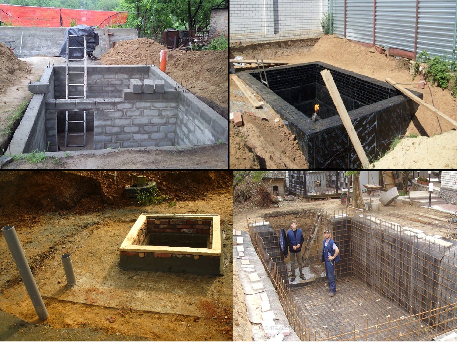 Как указывалось выше, стены ямы возводятся либо из бетона, либо из кирпича.