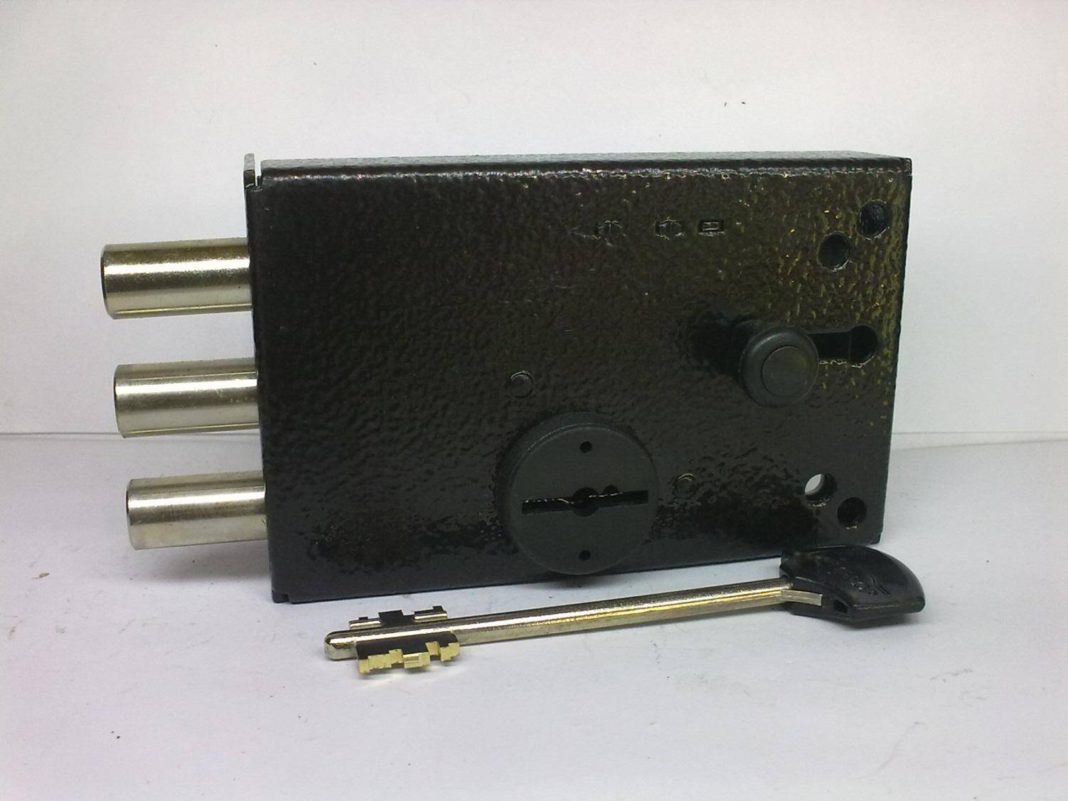 Такие модели замков отличаются цилиндровым устройством, в котором есть 3 ряда штифтов. При этом они имеют оригинальную конструкцию, характеризующуюся массивным, широким и прочным ригелем. Однако сам механизм слабоват, поэтому при взломе его можно выбить несколькими ударами молотка.