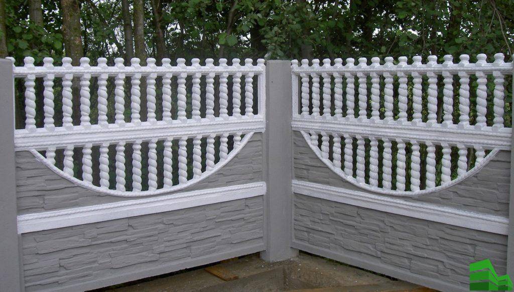 Есть много типов секций заборов и столбов с декором: под дерево, кирпич, узорные орнаменты и др. Помимо этого, бетонные сооружения шпаклюются и красятся. Популярны сегодня сборные бетонные столбы, которые быстро собираются. Это может делать даже один человек.