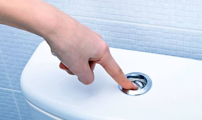 - нажатие на единственную кнопку выпускает набор воду из бачка;