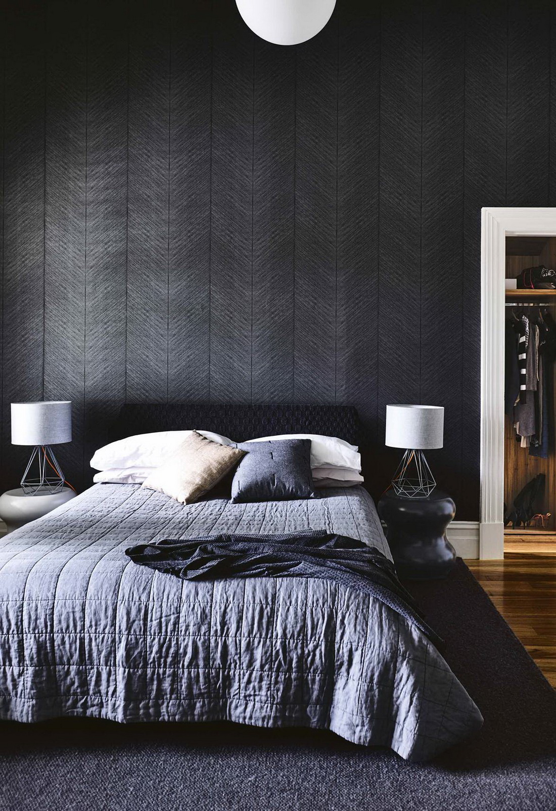 Темные обои в спальне могут создать уютную и загадочную атмосферу. От черного и темно-серого до темно-зеленого и темно-синего — выбор цветов огромен. Но стоит помнить, что темные оттенки могут оптически уменьшить пространство, поэтому они лучше подходят для больших комнат или использования на акцентной стене.