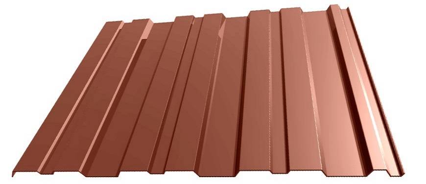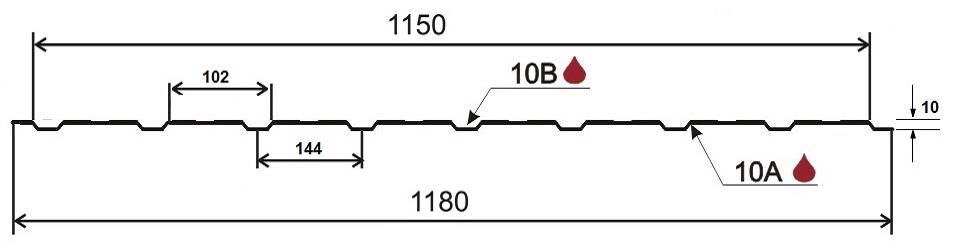 Такой лист имеет волнистую поверхность и обладает более низкой прочностью по сравнению с профилями, приведенными ниже. Полотно может иметь оцинкованное или полимерное покрытие. В продаже такие полотна наиболее часто имеют коричневый, вишневый, белый, синий или тёмно-зелёный цвет.