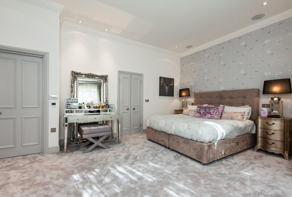 Какой стиль подходит для дизайна спальни с серыми обоями?