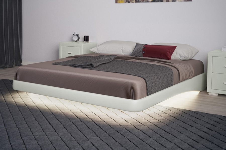 - Подсветка может выполнять также декоративную функцию. Например, боковая подсветка обеспечивает комфорт при вечернем чтении, а цветное освещение в нижней части создает романтическое настроение, иллюзию парения в воздухе.