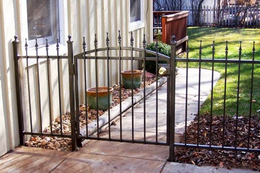Фото 4 — Ажурная кованая калитка одного дизайнерского решения с забором