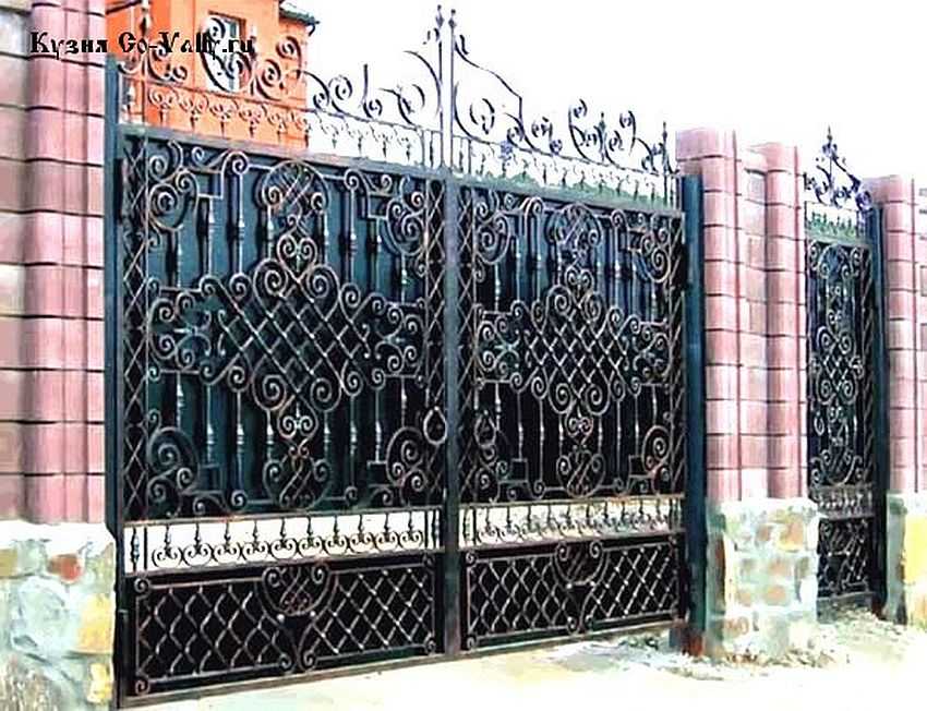 Конструкция кованых ворот и калитки оригинального дизайна представлена на фото ниже.