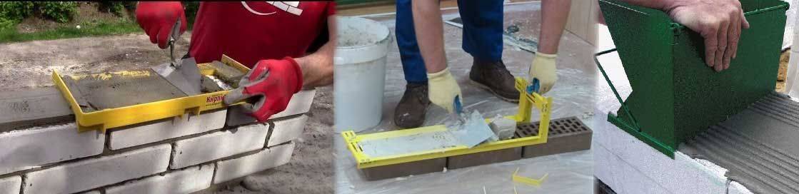 При правильном обращении ускорить процесс кладки помогут устройства для дозирования раствора между рядами – порядовки-дозаторы или кюветы. Подобные приспособления приобретаются в наборах или изготавливаются самостоятельно из подручных материалов.