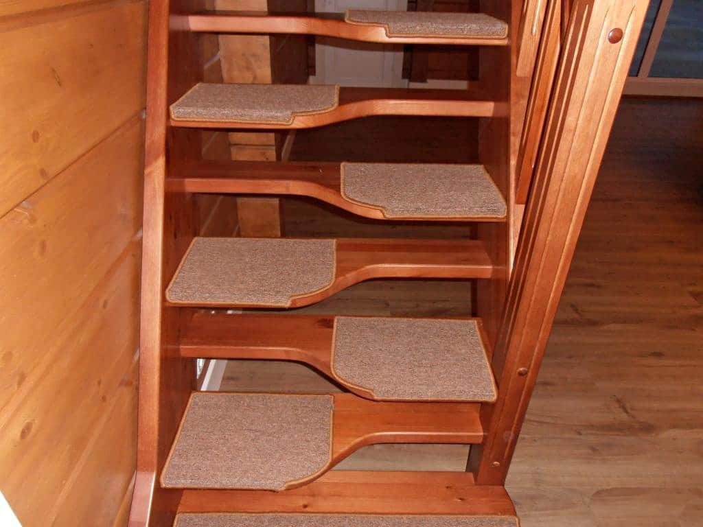 Важное значение имеет и подбор уровня ступеней – для школьников и пенсионеров будет сложно постоянно подниматься по высоким. Чтобы повысить безопасность конструкции, застелите лестничный проход ковровой дорожкой