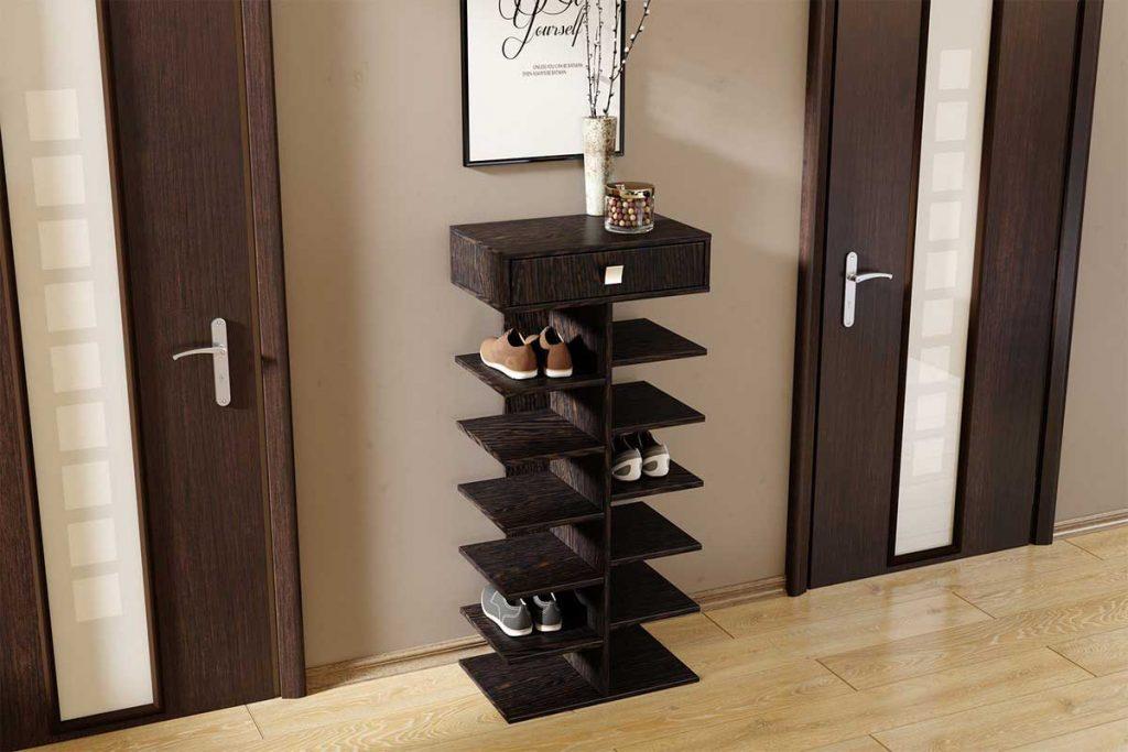 Для небольшого помещения лучше выбрать угловые шкафы и полки для обуви.
