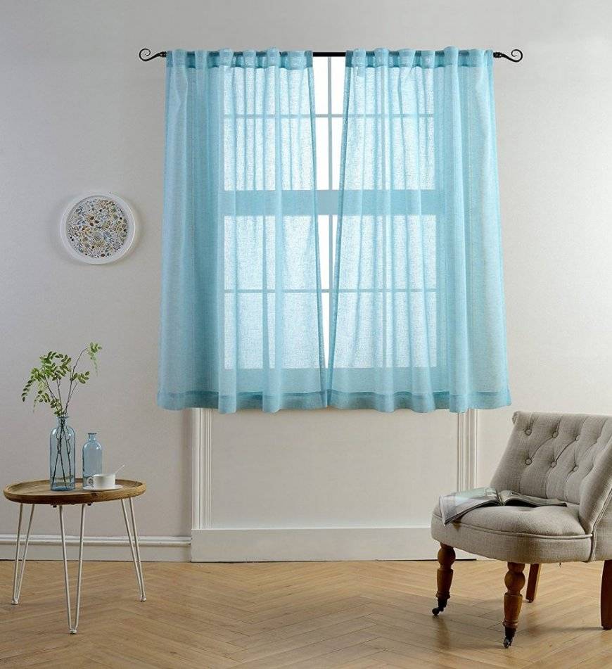 - Универсальными оттенками для штор на маленькое окно считаются розовый, голубой, салатовый, белый, кремовый.